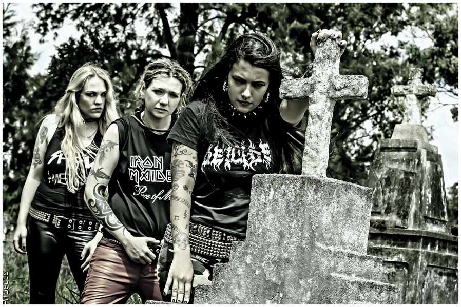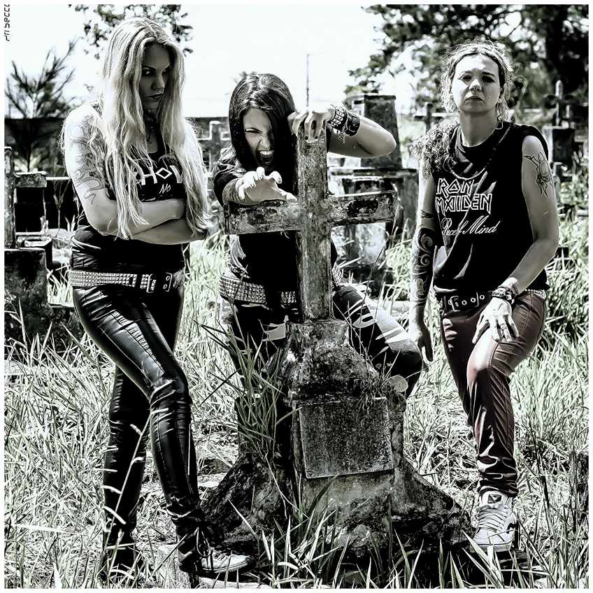 FERNANDA: I am a die hard fan and supporter of almost all kinds of metal, but thrash and death have always been my favourite ones! When i had my first 2 bands, i didn’t have any plans on gathering up a thrash metal band, because i was really into other metal genres cause i was too young! But when i gathered up my third band, i already had in mind i wanted to do something heavy, cause at that time i was really into thrash metal, and that’s actually one of the reasons why i had been kicked out from it, we started having musical differences. So when it was time to look for girls to gather up another band, i had it pretty clear in my mind to form an all female thrash metal trio! The quest for band members is never easy, especially if you’re looking for women, which, comparing to men, are more scarce in the metal scene. Here in Brazil we have many awesome female musicians, but if they aren’t already involved in bands, they don’t wanna take a band as seriously as i wanted, so it was pretty hard! That’s why when me and Prika got to know each other, we decided to stick up together in this new project, because we felt we were pursuing the same thing! Now i believe we have an awesome line-up: all of us are devoted to the band, all of us 3 are really focused in what we want and we also get along really well, which is really important!