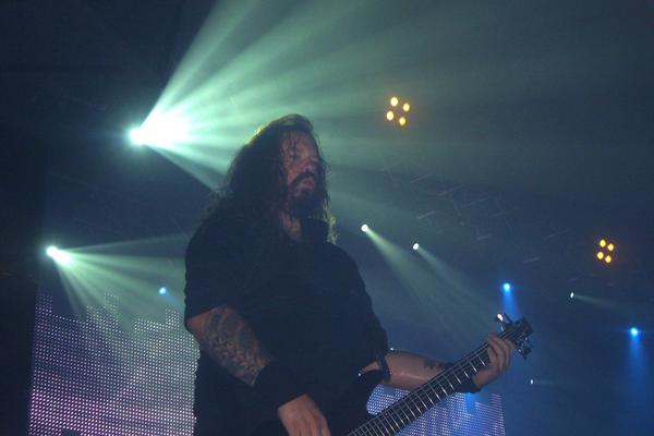 menos cuarto de la noche, la sala ya rugía y se había convertido en el horno que fue hasta al acabar su concierto. Abrieron con «The Chosen Pesimist», de su último trabajo, y muy inusual para la apertura de una actuación, tal vez sería más correcto decir «aburrido», ya que, bajo mi punto de vista, es un tema muy lento para abrir un concierto de ese tipo y que puede dejar frío a más de uno. Por suerte, a ese tema le siguieron algunos más potentes y enérgicos. Durante su actuación dieron un buen repaso a «A Sense of Purpose» aunque haya sido duramente criticado por gran parte de sus seguidores, aún así, absolutamente todos los temas fueron muy bien acogidos por un público que no paraba de cantar y corear todo lo que tocaban pero que, como era de esperar, se decantaba por material más antiguo.