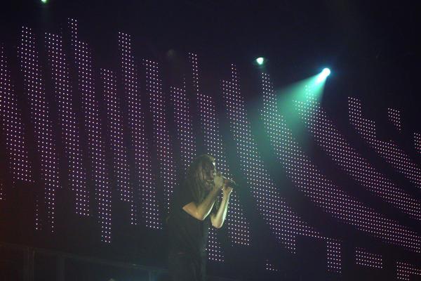 Como siempre, la iluminación era novedosa y jugaba un papel importante, dando más fuerza a la puesta en escena. El setlist fue bastante variado, tocando la potente «Vanishing Light», una coreada «The Mirror’s Truth» o su nuevo single y, por cierto, bastante flojo, «Alias». Temas como los mencionados se fueron mezclando con clásicos como «The Quiet Place», la preciosa «Come Clarity», una de las más coreadas, «Trigger», etc. y viejos clásicos como la imprescindible «Pinball Map», «Cloud Connected», entre otros. Asún así, el repertorio no dejó de ser sorprendente, dejando caer pequeños regalos como «Satellites and Astronauts» (poco habitual en su set list) y otras visitas a aquel «Jester Race, sin olvidar una colosal Colony, todo ello con un buen sonido que se vio empañado, sobretodo, cuando tocaron el último tema, «Take this Life».