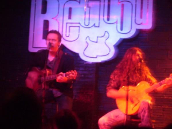 Tras un retraso considerable en la apertura de puertas respecto al horario marcado, el show también comenzó más tarde de lo previsto. Alrededor de las diez de la noche y ante unas escasas 70 personas, Danny Cavanagh y Sean Jude aparecieron sobre el escenario para interpretar más de media hora de temas de LEAFBLADE. Como es lógico, el repertorio se centró en su único disco lanzado hasta la fecha titulado «Beyond, Beyond» (que por cierto, Danny no paraba de decirnos que nos hiciéramos con un copia del mismo), durante el cúal se demostró que Danny es un enorme guitarrista y su compañero Sean un enorme cantante con una voz que llegaba a múltiples registros y que encajaba perfectamente a lo que las canciones de LEAFBLADE requerían haciéndolas agradables para el oído del público allí congregado. Además de eso, LEAFBLADE tocaron una canción de una antigua banda de Sean para dar a este gran músico a conocer de la mano de Danny mientras que para terminar su actuación, interpretaron una versión de la mítica banda LED ZEPPELIN. Nos dejaron un buen sabor de boca aparte de mostrarse muy cercanos con la gente allí presente dandónos las gracias en todo momento y permitiéndose hacer alguna que otra broma a la vez que Danny nada más comenzar el concierto, sugirió a la gente que fumaba que no se pusiera en primera fila ya que el humo le molesta bastante y Sean dijo que era asmático.