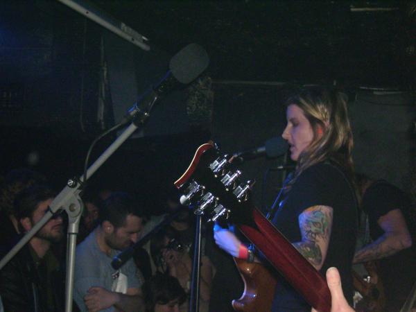 presentarnos su nuevo trabajo titulado «Static Tensions» y sinceramente, tras degustar un par de discos de KYLESA y luego escucharlos en directo, uno se lleva un chasco a considerar ya que las canciones suenan bastante diferentes sobre un escenario que en un CD. Si bien es cierto que tocar en un escenario enano (en el cúal ya es un milagro poder meter las dos baterías que caracterizan a los de Savannah) puede hacer que pierdas potencia y contundencia, pero lo que no es de recibo es que la cantante Laura Pleasants desentone tantas veces como aquella noche. Y aún sabiendo que las voces no son un punto fuerte para la banda, tampoco se puede justificar que Laura no diera el nivel en la mayoría de canciones y especialmente en una «Hollow Severer» para olvidar. Y si a éso le sumamos que la voz de Phillip Cope sonó en un 75% igual que en los discos, pues podemos pensar que KYLESA no tuvieron ni mucho menos una aceptable noche en cuanto a aspectos vocales.