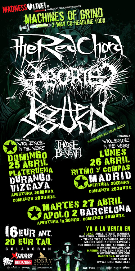 Debido al volcán islandés de nombre impronunciable, la gira que iban a realizar por el continente europeo THE RED CHORD con ABORTED, ROTTEN SOUND y THOSE WHO LIE BENEATH se vio gravemente trastocada con la ausencia de los primeros y de los últimos ya que les fue imposible llegar hasta el viejo continente y se quedaron en USA, por lo cual, ABORTED Y ROTTEN SOUND tocaron en diferentes ciudades españolas con bandas locales en cada cita. Como consecuencia de todo ello, mucha gente desistió en la idea de ir a esta gira y o bien pasaron de comprar la entrada o bien devolvieron las mismas.