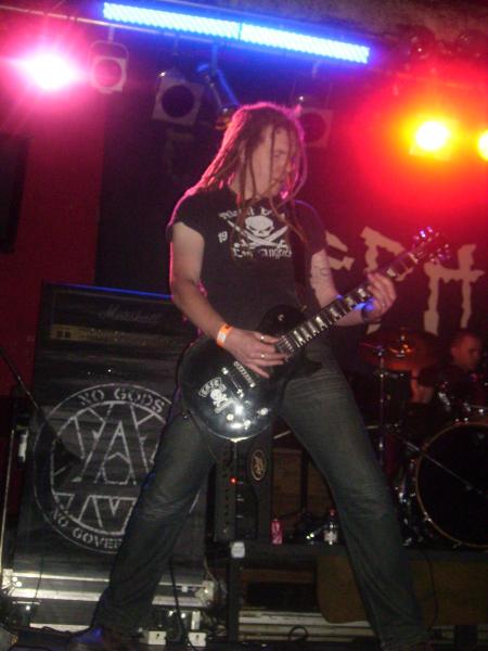 subieron al escenario la sala estaba prácticamente vacía, además de los trabajadores, equipo de las bandas, algún músico de los otros grupos del cartel y unas pocas personas más. Lo cual demuestra que abrir un concierto a las 6 de la tarde en día laborable, no es sinónimo de gran audiencia. THE ROTTED descargaron, durante media hora, temas de su único disco hasta la fecha “Get Dead or Die Trying” y de su EP “Anarchogram”.Con un frontman hiperactivo y enérgico, estos británicos dieron una clase magistral de cómo descargar la mayor brutalidad sin sonar en absoluto monótonos, con cantidad de detalles que saben trasladar perfectamente al directo y, sobretodo, con un buen sonido (a pesar de que la voz durante los primeros momentos fuera poco audible). Una lástima la poca gente que habitaba la sala Mephisto entonces y la poca entrega de los allí congregados para mostrar la respuesta que la banda merecía.