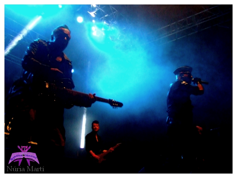 No hay grupo que no sepa meterse a la gente en el bolsillo como la banda de metal industrial Eisbrecher. Su combinación de metal y electrónica es perfecta, y lo mismo gusta a la gente amante de las guitarras por sus potentes solos de guitarra y la utilización de instrumentos en el escenario (3 guitarras, bajo y batería), como a la gente que adora la electrónica con las bases que se utilizan en cada tema. Su cantante, Alexander Wesselsky (Alexxx), antiguo miembro del grupo Megaherz (del que también se ha hablado en esta web), tiene una voz profunda muy peculiar y espectacular. Siempre he pensado que Rammstein se tenían que haber quedado en su casa y los que tenían que haber triunfado son esta gente, dado que su calidad musical es mil veces mejor y las letras…. bueno, es que no hay color, directamente. Alexxx juega con el público, habla con ellos, hace un poco de espectáculo, se ríe, canta, hace un poco el payaso… vamos, que hay show para rato, y por algo han pasado de tocar una tarde en el Parkbühne a ser el último grupo en tocar en el Agra el viernes por la noche, algo digno de un cabeza de cartel. Tocaron temas de toda su discografía en un concierto de aproximadamente una hora y media de duración (me lo estaba pasando tan bien que ni me di cuenta del tiempo, la verdad sea dicha) en el que interpretaron temas, incluidos algunos de su último disco, publicado este año, Die Hölle Muss Warten (El Infierno debe esperar) como Tanz mit mir, Die Hölle Muss Warten, Schwarze Witwe, Angst?, Vergissmeinnicht, Kein Mitleid o Böse Mädche para acabar con el hit This is Deutsch, con dos de los integrantes vestidos con trajes típicos alemanes, banderas gigantes de Eisbrecher en mano, haciendo una sencilla coreografía militar en el centro del escenario, y mientras Alexxx blandía banderas de varias regiones del país mientras cantaba el estribillo que desató la locura del público. Sencillamente espectacular.