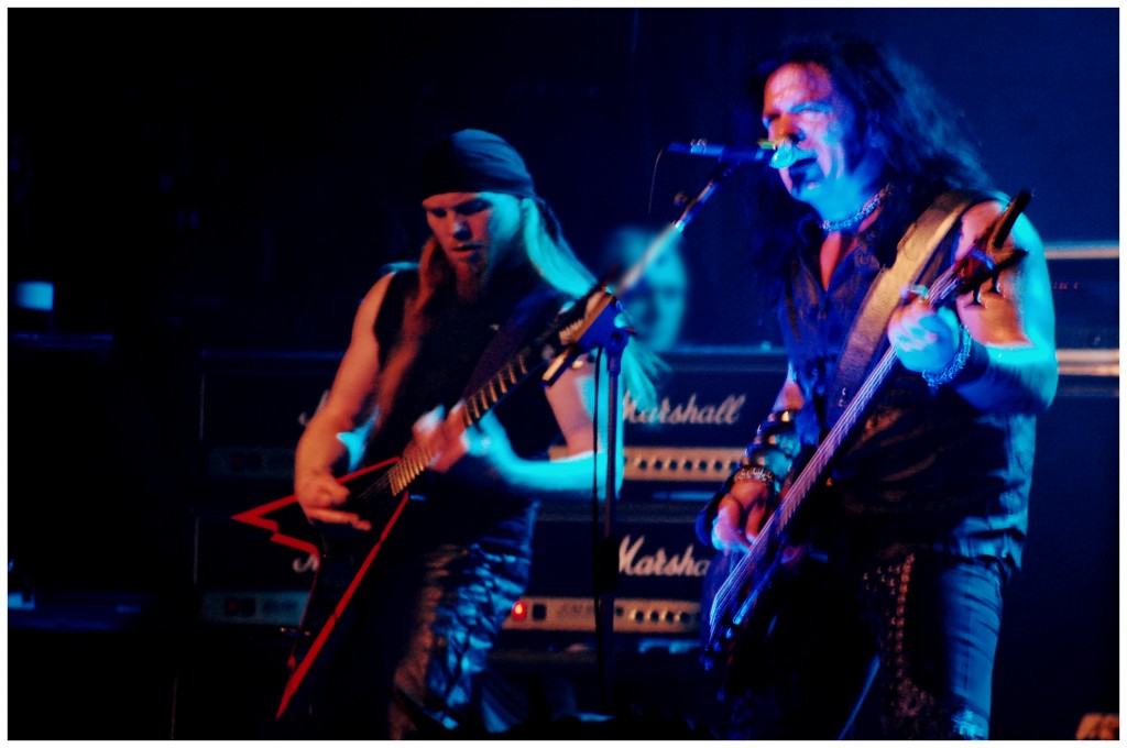 Como era de esperar, la cola incluso una hora antes de que abrieran puertas era considerable, y no hacía otra cosa que llegar gente. Tal es así que el gentío dentro de la sala antes del inicio de la actuación de FUELED BY FIRE llenaba prácticamente todo el recinto. Y, mientras todavía iba llegando gente, los californianos salieron al escenario con ganas y presentándose en español para comenzar su corto set con «Rising from Beneath», de su último «Plunging into Darkness». Tampoco faltaron trallazos como «Within the Abyss» o «Unidentified Remains». Lo cierto es que fueron todo auténticos trallazos, puro ataque Thrash sin miramientos y casi sin pausa, aparte de las habituales palabras cordiales hacia el público. Un público que, por cierto, a pesar de ser abundante, no se mostró demasiado entregado a la implacable actuación de los yanquis. De todas formas ellos siguieron con pasión dejando caer «Dreams of Terror», de su álbum debut o la potente «Thrash is Back». Finalmente se despidieron del público catalán (aunque parecía haber asistentes de toda la geografía española) con «Eye of the Demon». A pesar de los esfuerzos de su frontman por animar al público, este se mostró distante, algo injusto ante la buena actuación de FUELED BY FIRE en la que no dejaron de descargar tralla. Sin duda, una de esas bandas que gana en directo, sobretodo en intensidad. Concierto corto pero intenso, ideal para ir caldeando el ambiente.