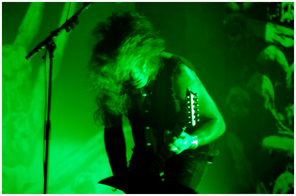 y los suyos siguieron dejando buen sabor de boca con pistas como «Chapel of Ghouls». Lo cierto es que fueron numerosos los guiños a su primer disco, algo que a buen seguro agradecieron todos sus seguidores, y de hecho lo demostraron con una calidísima recepción. Tampoco faltó algo de la época sin Vincent, como «Bil Ur-Sag», pero después volvieron a «Covenant» para rescatar «God of Emptiness»,