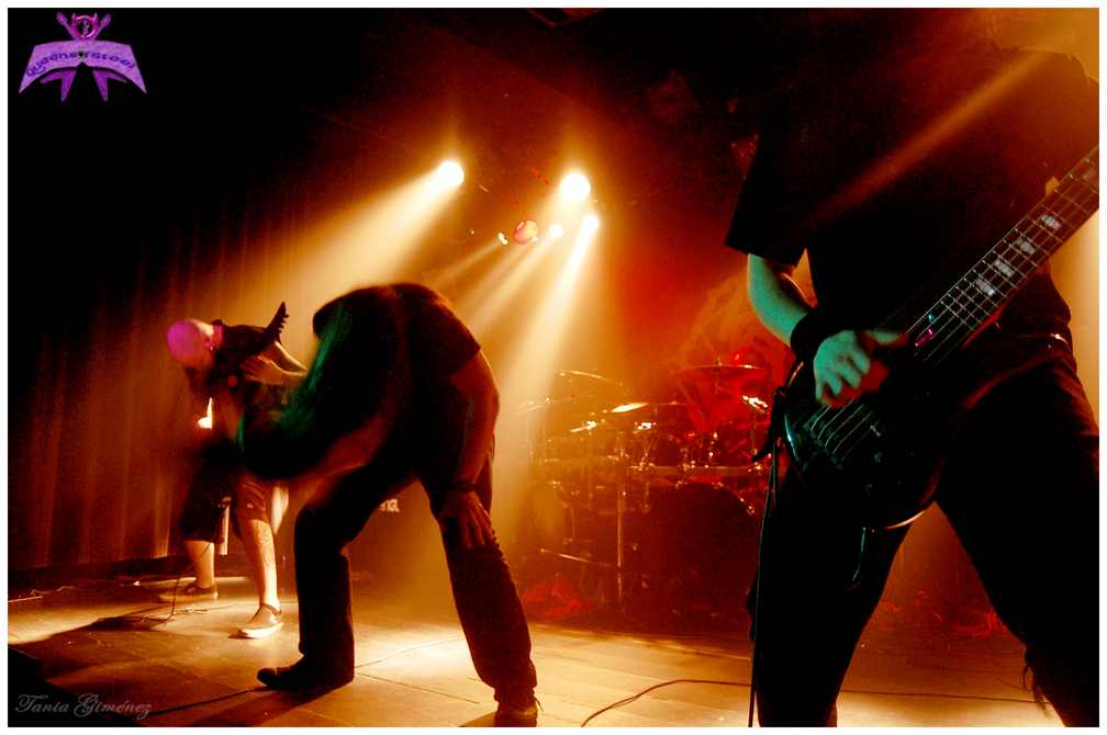 impacable Flou Mounier tras el kit de batería, repartiendo cera sin piedad y sonando como una verdadera apisonadora. Se guardaron ases en la manga como las coreadísimas «Slit your Guts» o «Phobophile», de su añorado «None so Vile». Una buena elección que dejó a sus seguidores completamente saciados y hechos polvo tras tal ataque de bestialidad sin pausa. Los canadienses supieron estar más que a la altura, y el público barcelonés se lo agradeció de la misma forma.