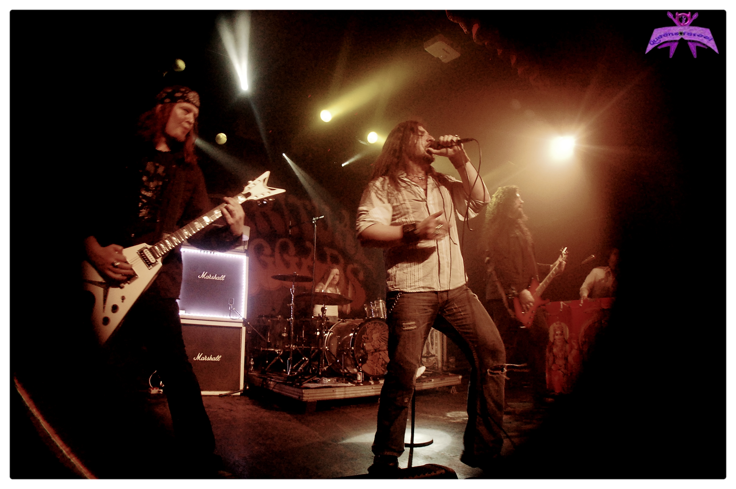 en todo momento, cómo llenar el escenario con vitalidad y, sobretodo, cómo meterse al público barcelonés en el bolsillo, que no dejó de agolparse en las primeras filas y corear sus canciones de principio a fin. Entre su bien seleccionado (y variado, repasando todos sus álbumes) no faltaron títulos como la bien recibida «Young Man, old Soul» o «Turn the Tide», de su nuevo redondo. Dicho esto, no se centraron demasiado en tocar cortes de su nueva obra, aunque también dejaron caer de esta «Dreamer», «One Man’s Curse» y «Wise as a Serpent», seguida de «Kingmaker». Destacable especialmente lo sólida que se mostró la formación en todo momento, resultando una verdadera máquina bien engrasada y perfectamente acompasada. También resaltar la forma en que Apollo hizo vibrar y cantar con el a todo el público, mostrando ser un gran showman, aunque el resto de componentes tuvieron también sus ocasiones para brillar en solitario con pequeños solos y, como no, mención especial al siempre excepcional Michael Amott a la guitarra. Ciertamente, suenan mucho más unificados y potentes en directo, lo cual muestra su unidad como banda.