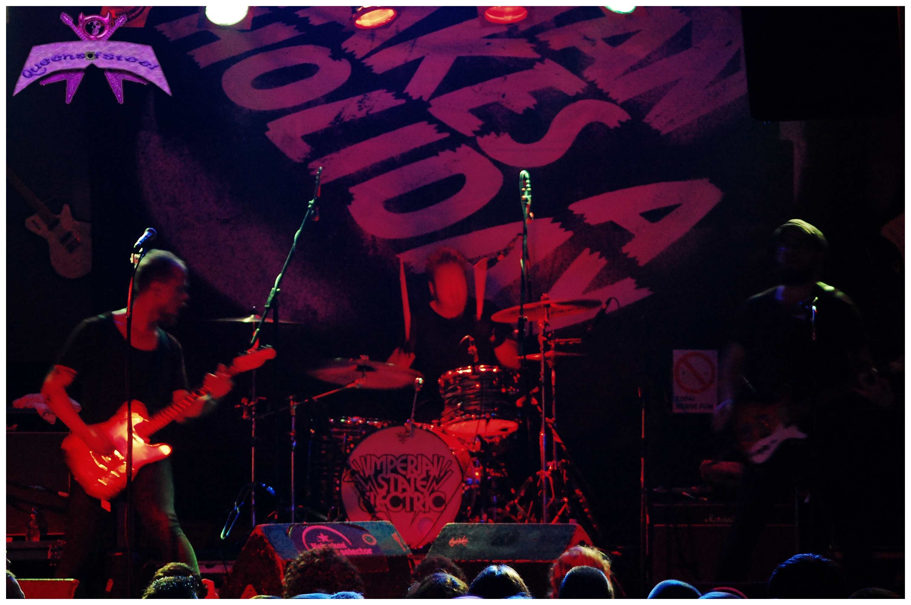 Comenzaron caldeando el ambiente SATAN TAKES A HOLIDAY, con una propuesta única, a veces caótica, pero también fresca, muy rockera y festiva, ideal para calentar motores en una noche como aquella. Un concierto con unas canciones directas, una banda dinámica que supo llenar el escenario y entretener, incluso animar al público a cantar sus temas. Unos temas sencillos, con garra, como «Candy in Mouth» o «Who do you Voodoo», de su último álbum con ese mismo nombre. Buen sabor de boca el que dejaron SATAN TAKES A HOLIDAY con su Rock sencillo y directo, pero único. Caldearon bien el ambiente, y el público ardía ya en deseos de ver ya a IMPERIAL STATE ELECTRIC sobre el escenario, que no se dejaban caer por España desde que telonearan a KISS en su gira del Sonic Boom.