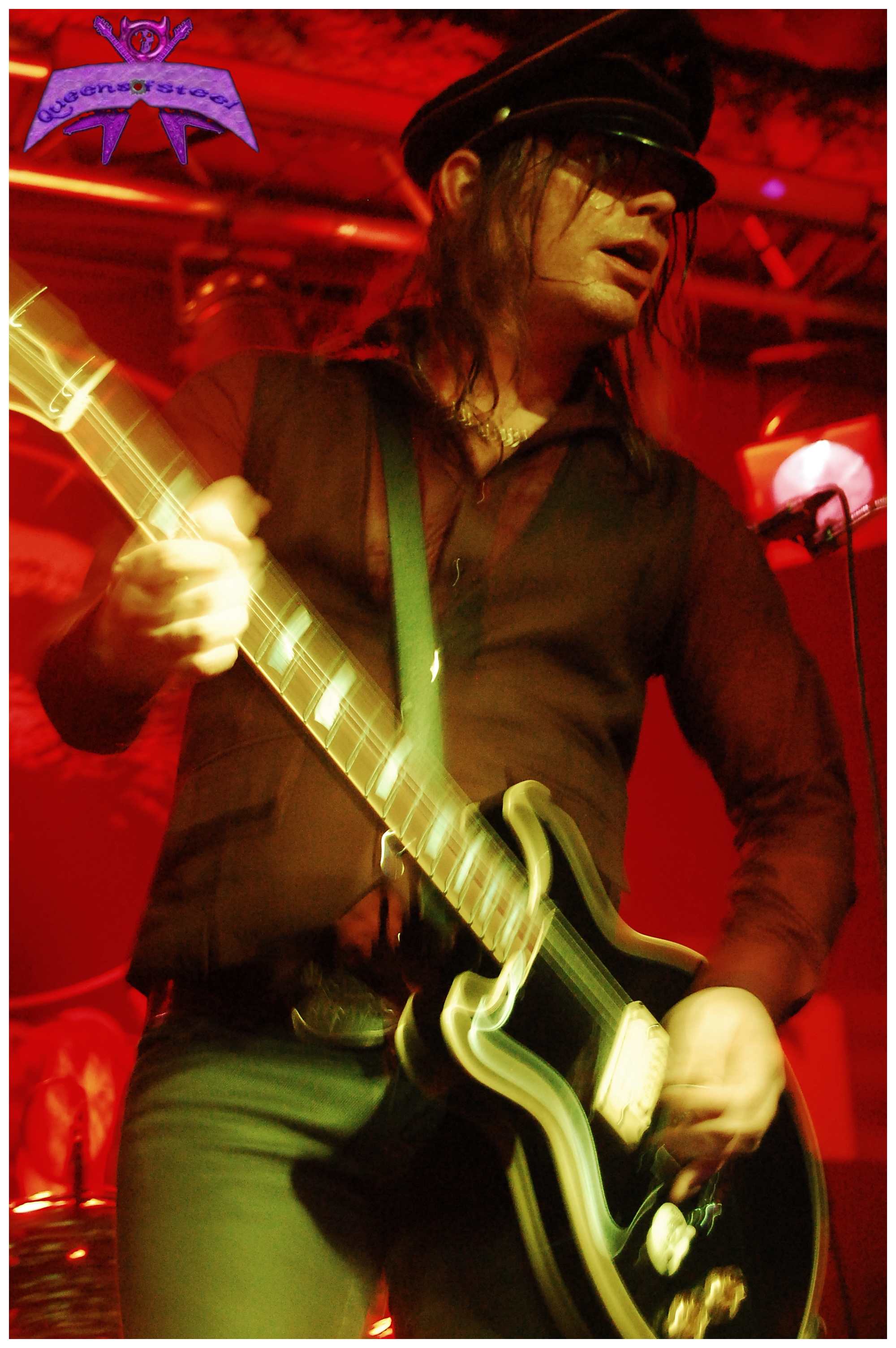 IMPERIAL STATE ELECTRIC saltaban sobre el escenario de la Sala Bóveda, y Nicke Andersson, sin separarse de su gorra, dejó claro que lo que veíamos sobre las tablas no era Nicke, sino Nick Royale, su alter-ego rockero, un verdadero rockstar que cuida tanto las poses, la imagen sobre el escenario, como las dotes musicales que siempre lo han acompañado. Hace mucho que se pegó a su gorra y su guitarra para no soltarlas, y todo lo que hace con ellas es una auténtica maravilla. Como el concierto que nos ofrecieron.