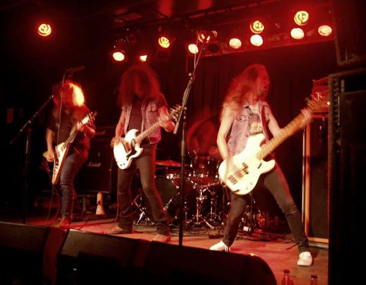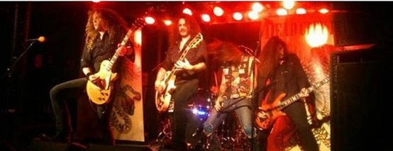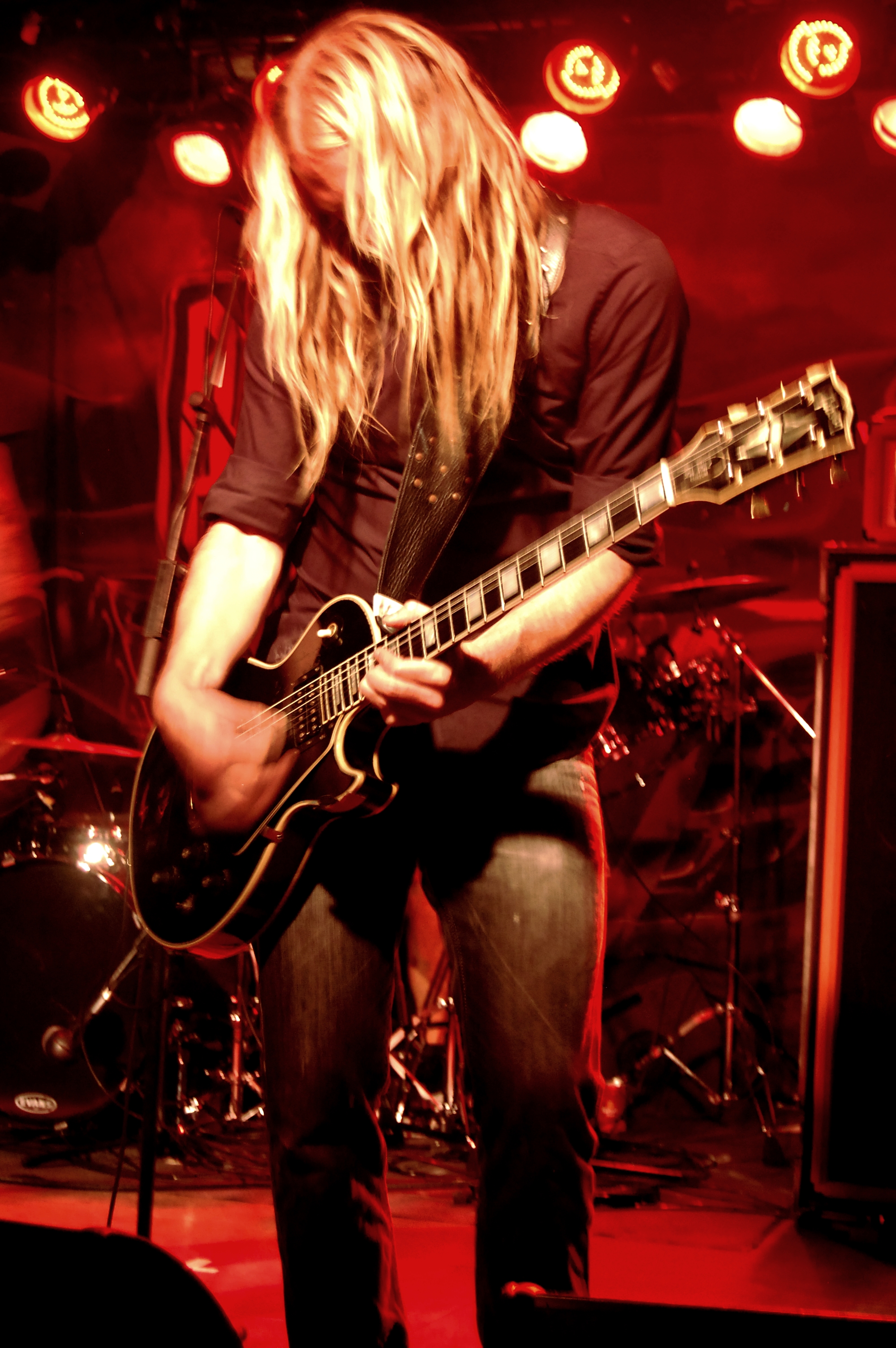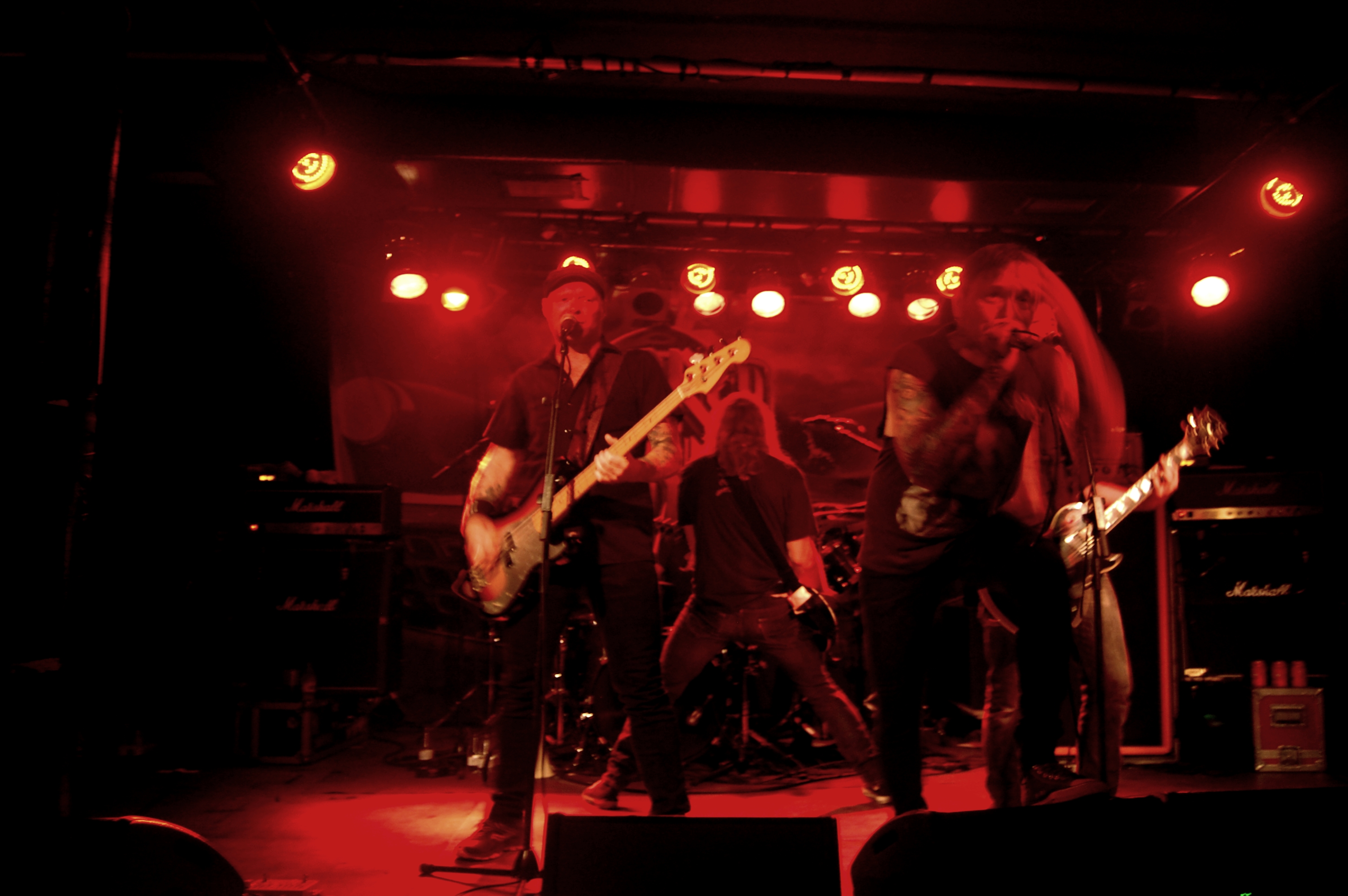 nuevas, y con esta ya pude comprobar que ganan en energía. Más títulos nuevos con “Ruins”, ya bien conocida y recibida por el, ya no tan escaso, público, y que ya se percibía ligeramente más entregado a la actuación de DEAD LORD y entrado en calor. Con Hakim Krim al frente y al mando siguieron desgranando sin pausa y mucho sudor temas como el agradable medio tiempo “No Regrets”, o viajes al pasado con “Onkalo” o “Hank”. Los amplis echaban humo (literalmente, cuando al arrodillarse Hakim en un momento con su guitarra frente a un ampli y empezó a salir humo por detrás) y ellos seguían haciéndonos gozar de lo lindo con títulos como “Don’t Give a Damn” o “Strained Fools”. Sin dejar ellos tampoco de disfrutar en ningún momento. Y es que hay pocas bandas que muestran tan buena química entre ellos en directo. Muy pocas bandas que se note tanto que lo están pasando bien. Y eso, sin duda, se transmite al público. Incluso durante un tema Martin se cambió por la guitarra y Hakim tomó la posición de bajista. Y así, entre buen rollo y mucho Rock, continuaron sin dejar atrás pista como “Because of Spiet”. Se acercaba el final, y ellos seguían derramando energía como al principio. Continuaban firmes. Sin titubeos. Sonando como un cañón. Hasta que el final llegó con “Hammer to the Heart”. Y se fueron como cuando habían llegado. Entraron, descargaron toda su artillería pesada y se marcharon por todo lo alto. Bien tranquilos al haber dado toda una lección de Rock n’ Roll.