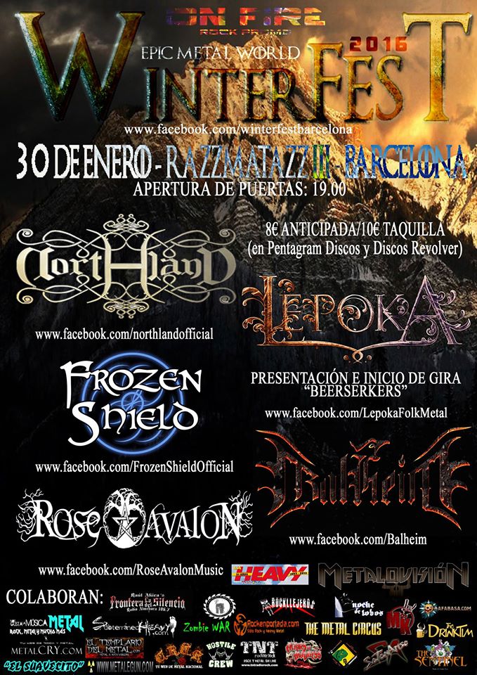 El 30 de Enero los amantes del folk metal tenemos una cita excepcional en Razzmatazz 3. Se trata del Winterfest. Un evento que acoge a las bandas barcelonesas “Northland”, “Rose Avalon” “Frozen Shield” y “Balheim” y tiene como invitados a Lépoka que, desde Castellón de la Plana”.presentan oficialmente su segundo trabajo, “Beerserkers”. Éste verá la luz el 23 de Enero, así que lo podremos disfrutar en primicia a finales de este mes. Nos espera un evento muy fiestero lleno de violines, moshpits y cuernos de cerveza entrechocando.