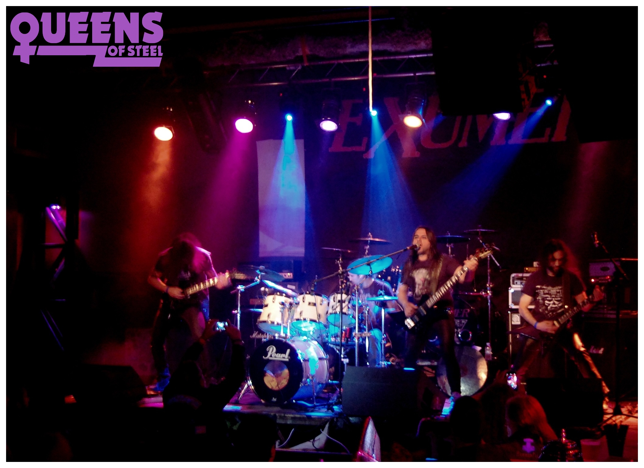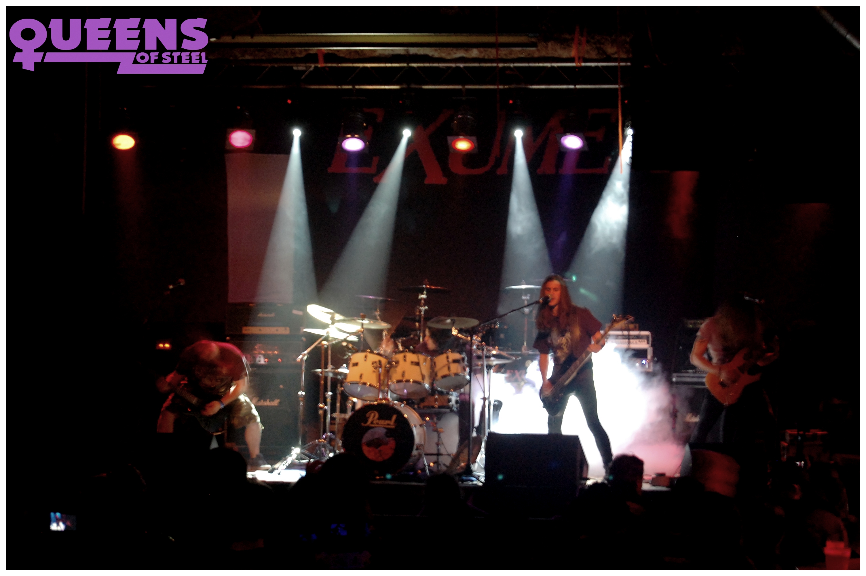 EXUMER aquella noche iban a conquistarnos, y supieron cómo hacerlo desde el comienzo. La banda estaba al completo en el escenario para comenzar su arrollador set con «Winds of Death», de su segundo trabajo. No hizo falta demasiado para que la gente se agolpara en las primeras filas y empezara a responder a la impecable actuación que acababa de comenzar. Siguieron dando un repaso a toda su discografía, con unos 5 temas de su nuevo trabajo con «Journey to Oblivion» y algunos de los cortes nuevos como «Brand of Evil», que obtuvo una buena respuesta a pesar de que su nuevo álbum el día del concierto todavía no se había lanzado. La banda se mostró compacta, a nivel técnico e interpretativo soberbia, pero con una actitud algo insulsa y seria, a excepción del incansable Mem Von Stein, que fue todo un torbellino de principio a fin y que no dejó de mostrarse cercano con el público, incluso bromeando sobre su español. A pesar de que los únicos miembros originales sean Mem Von Stein y Ray Mensh, han sabido elegir a la perfección a los músicos que los acompañan, mostrándose en todo momento a las alturas de las circunstancias sobradamente.