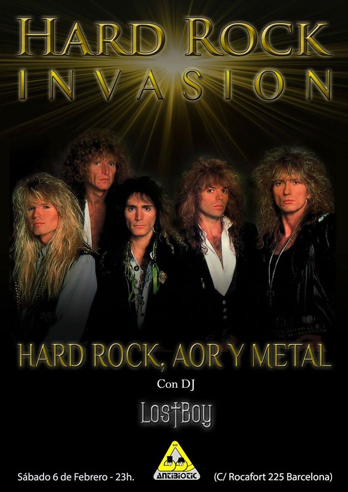 12640442_10208058255151697_877353632867572468_oEste sábado 6 de febrero, en el bar Antiobotic de Barcelona, no os podéis perder la fiesta “Hard Rock Invasion“. Un fiesta para todos los amantes del Hard Rock, AOR y Metal. Será de 23 a 3h, puesto que es un bar musical, pero tiene una zona muy amplia donde se permite bailar. Precios de bebidas muy competitivos, el mejor ambiente y la mejor música. ¡Nos vemos! C/ Rocafort 225