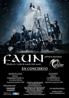 El próximo 15 de Abril Damask Events se estrena a lo grande y nos traen a “Faun” + “Cuélebre” a Barcelona. También los tendremos el 17 de abril en Madrid. Es una muy buena noticia para los amantes de la música Folk. El combo de ambas bandas nos augura una noche muy emocionante y llena de la belleza, el misticismo y la nostalgia que transmite este estilo musical.