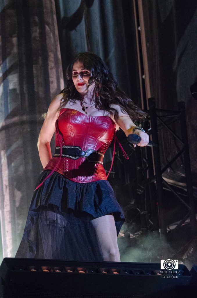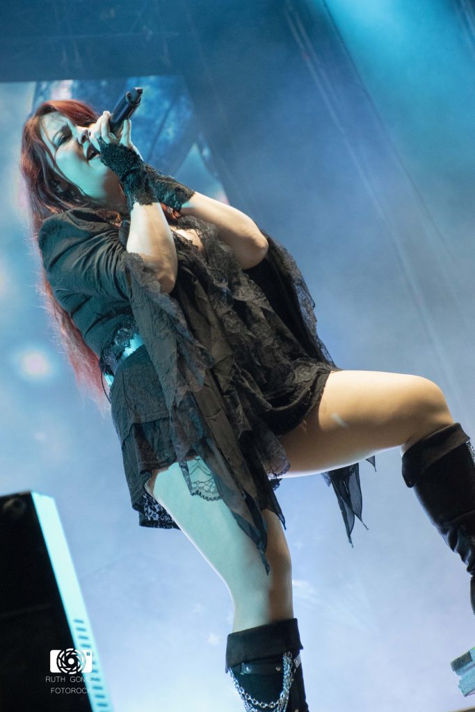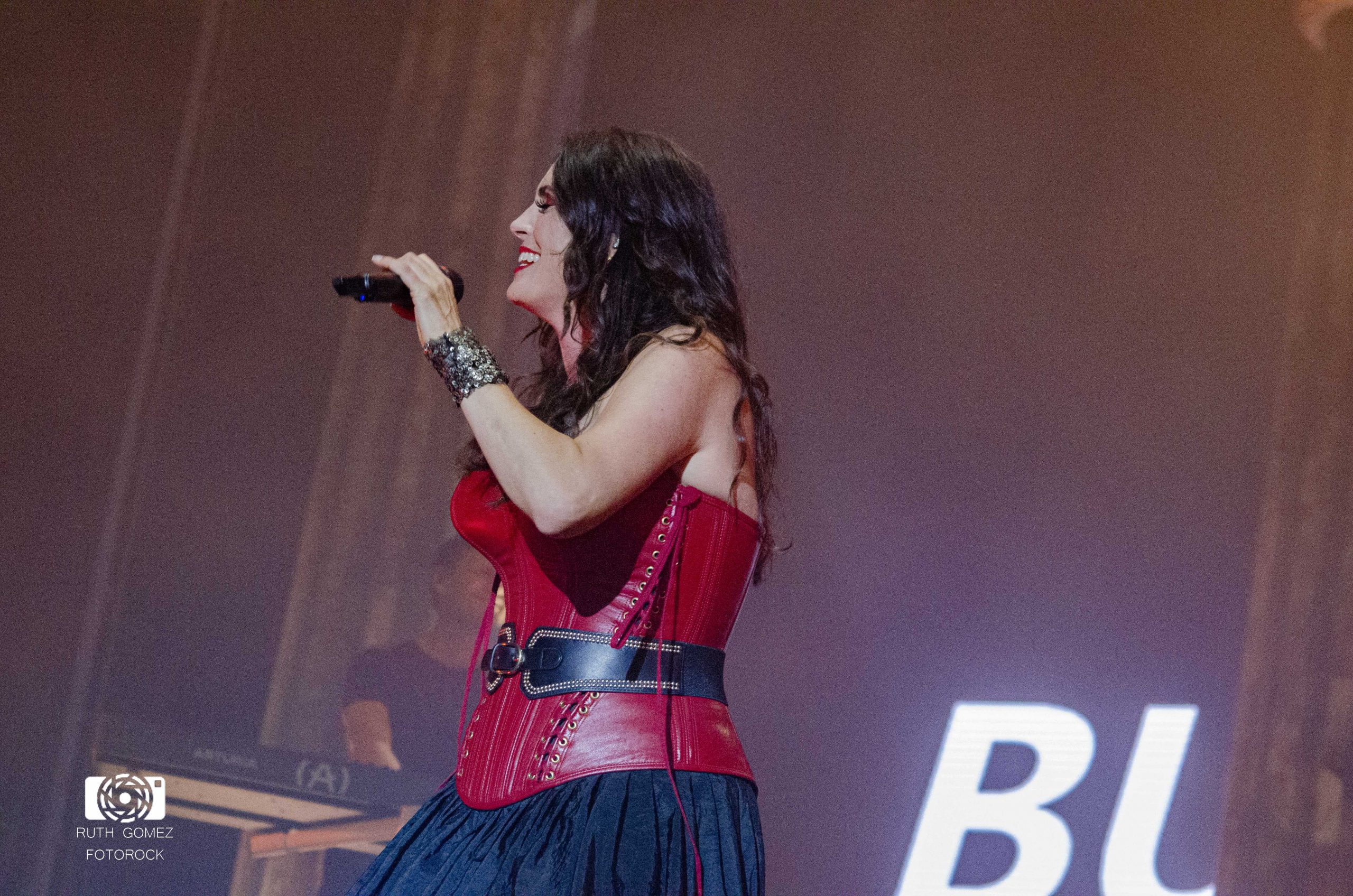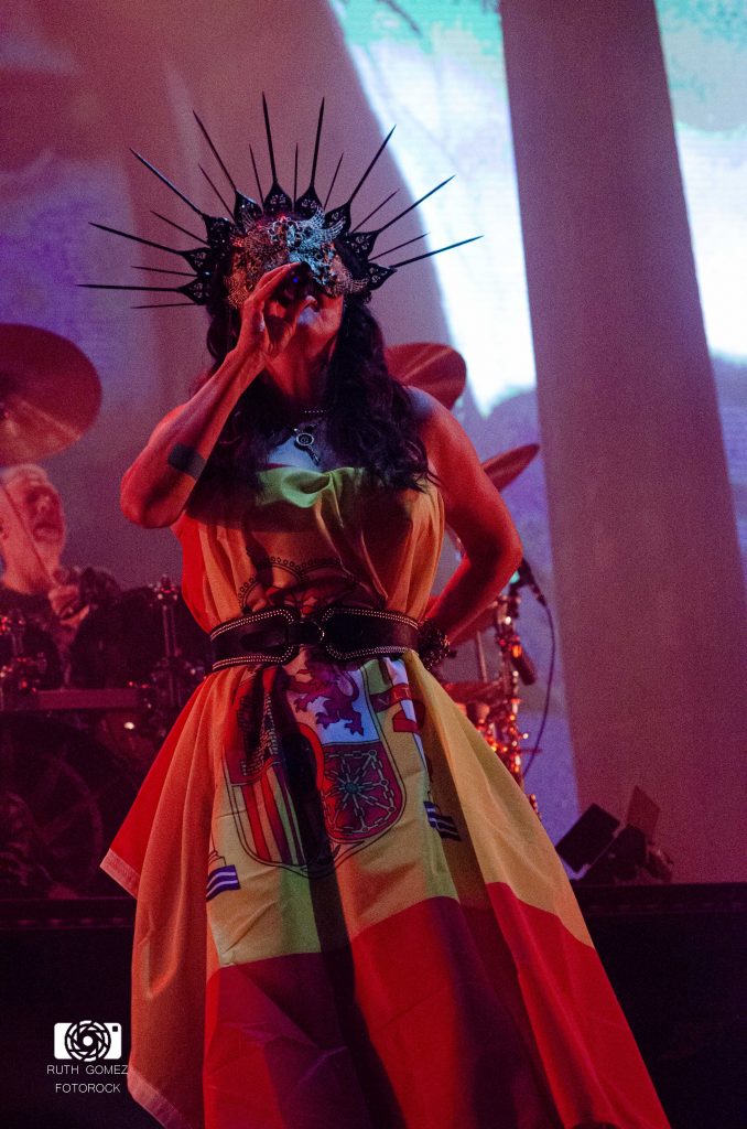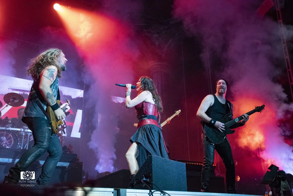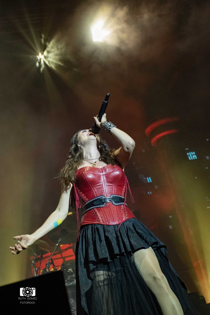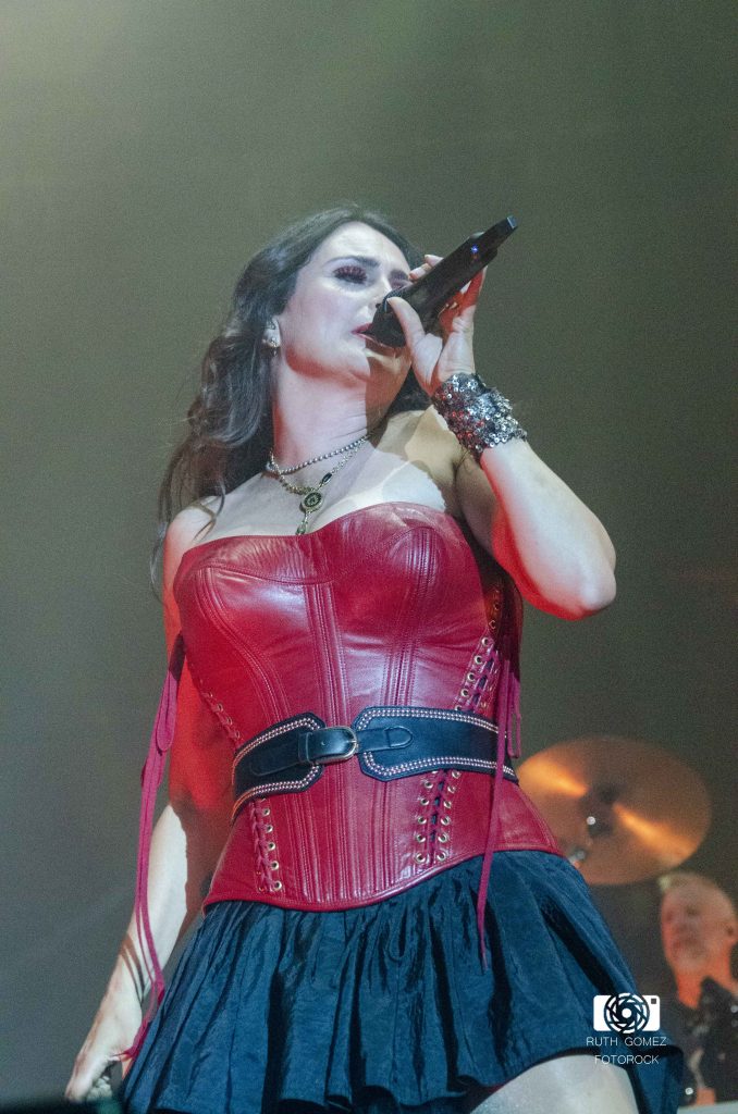 La banda de los paises bajos empezaba su concierto con We Go To War, y Sharon Den Adel salía ataviada con una bandera española a forma de vestido y una mascara parecidas a las que podríamos ver en operas o teatro al escenario. Escenario además, que evoca un antiguo anfiteatro con unas imponentes columnas a derecha e izquierda.