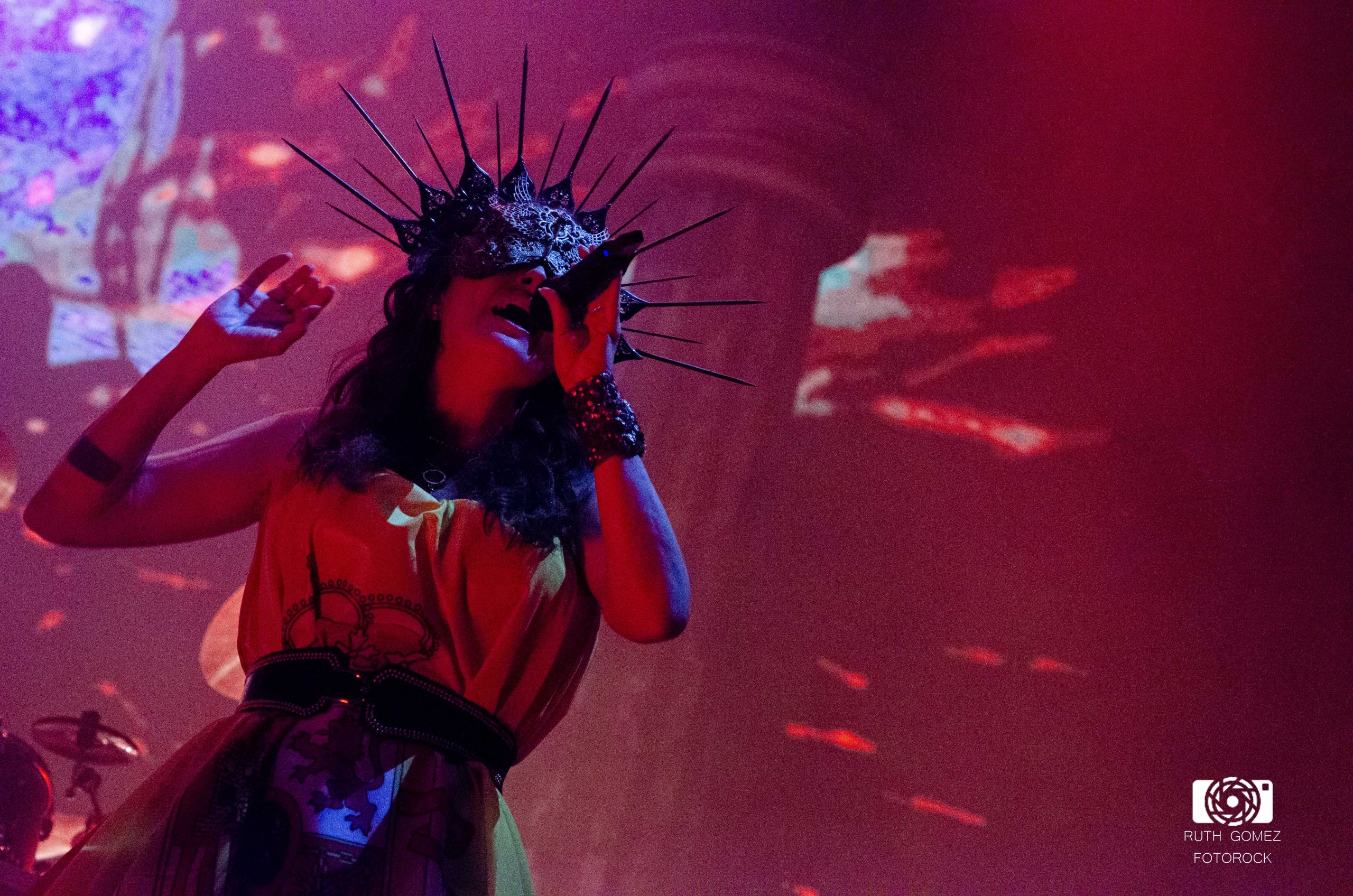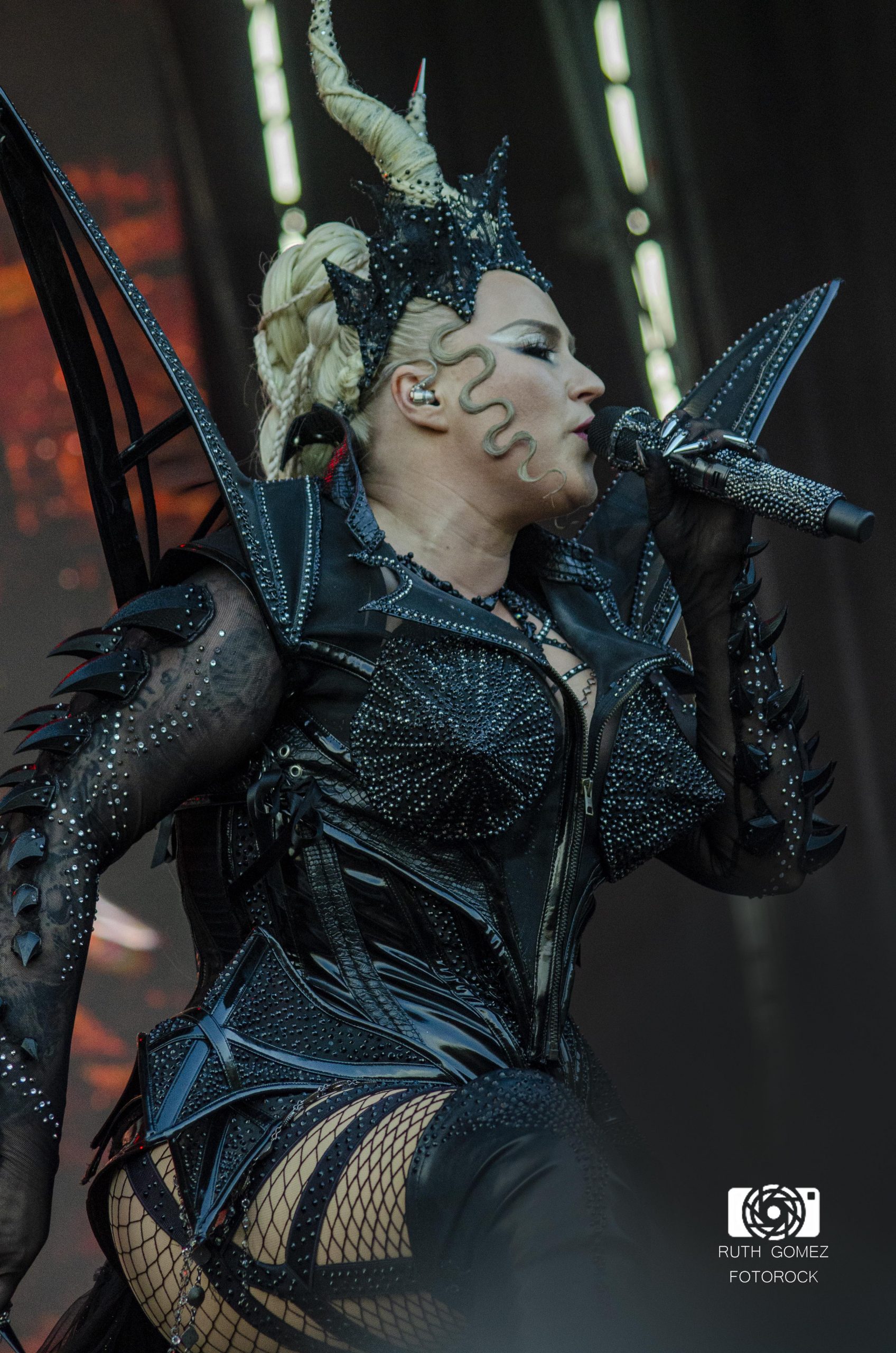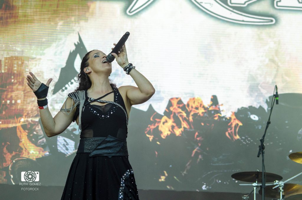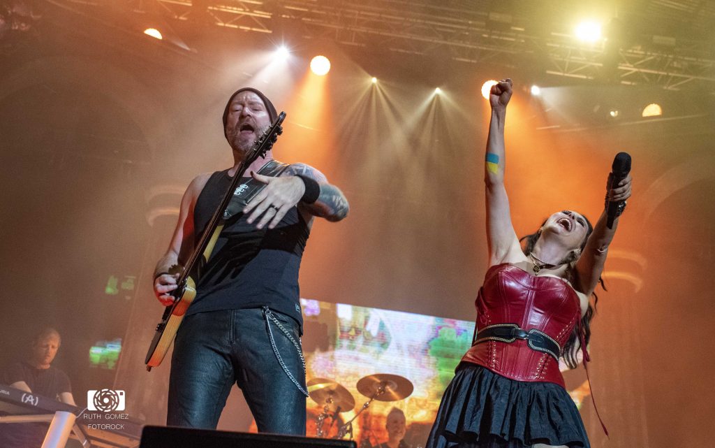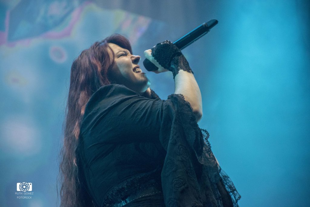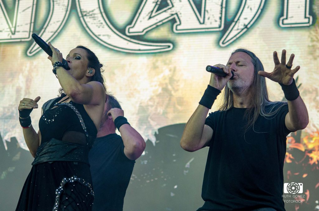 La banda de los paises bajos empezaba su concierto con We Go To War, y Sharon Den Adel salía ataviada con una bandera española a forma de vestido y una mascara parecidas a las que podríamos ver en operas o teatro al escenario. Escenario además, que evoca un antiguo anfiteatro con unas imponentes columnas a derecha e izquierda.