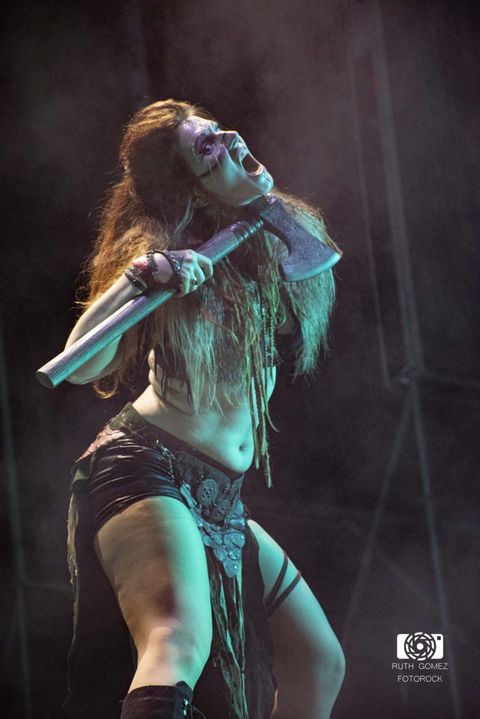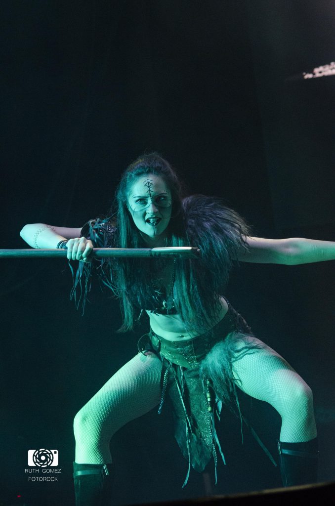 Visualmente son llamativos con sus trajes de armaduras, pinturas de guerreros pero sin exagerar, llevan dos bailarinas que interpretan los temas con sus danzas cual guerreras, con hachas y banderas que ondean en coreografía.