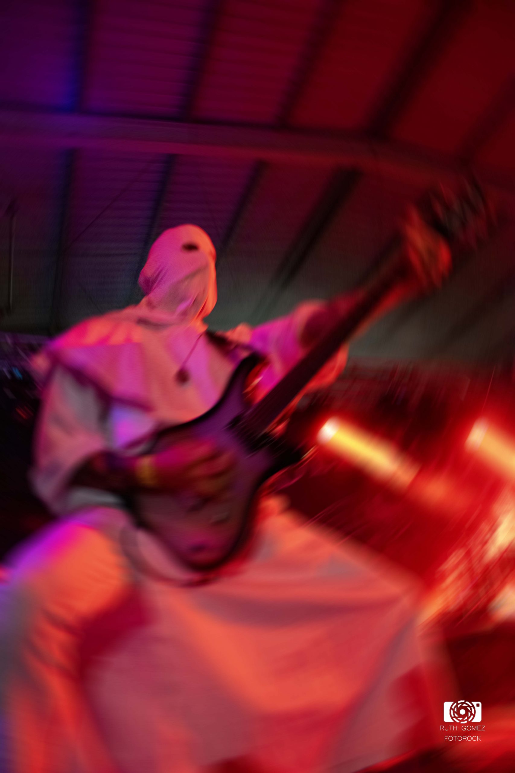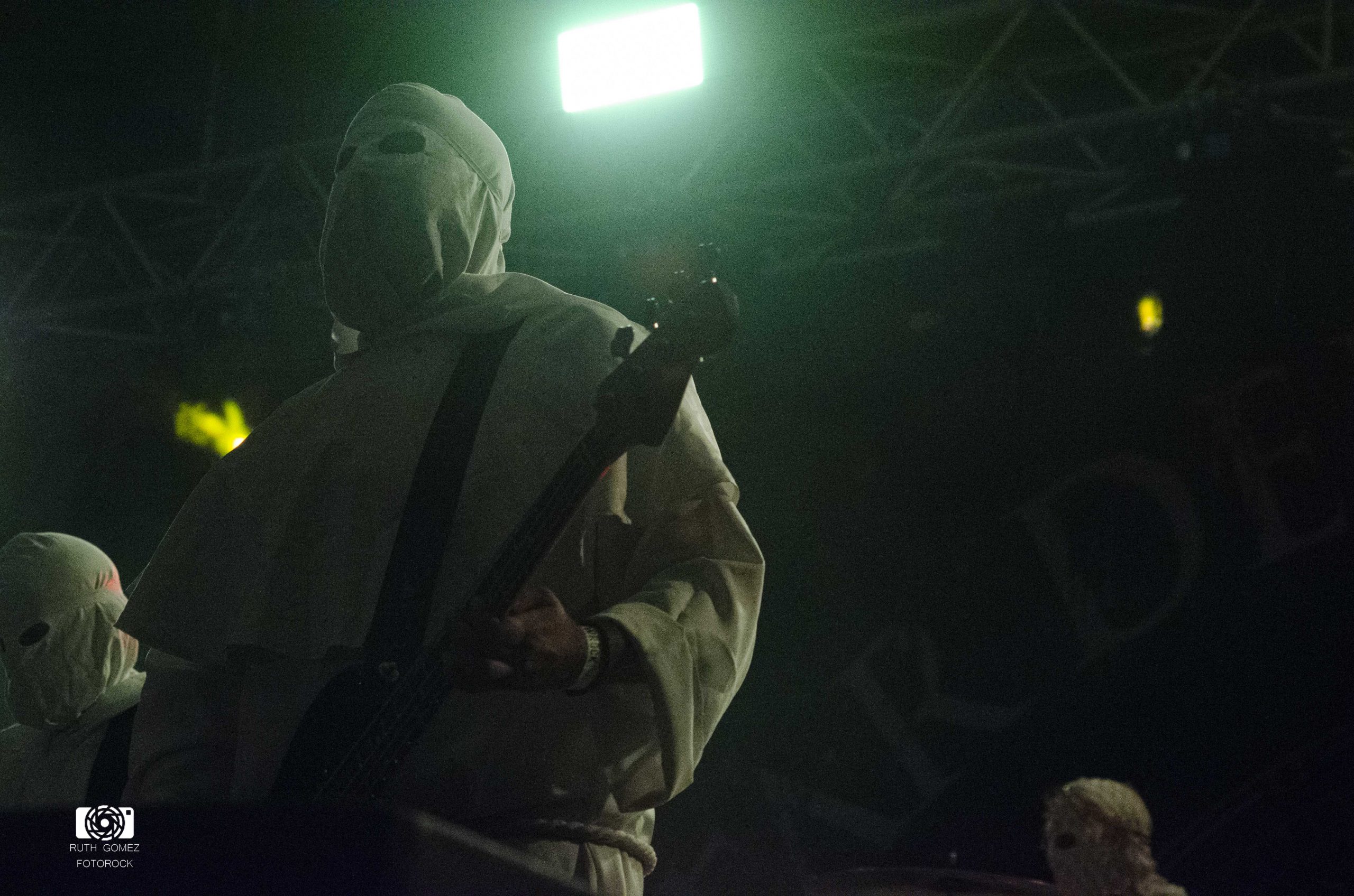 Me sorprende cuando llego que están sobre el escenario sin sus hábitos, cuando pensaba que ya habían empezado, resulta que están probando el sonido, y también me desilusiona, pues si algo envuelve a este grupo es la incógnita de no saber quien se esconde bajo los habitos.