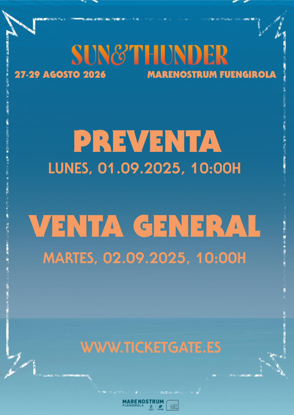 En cuanto a festivales mas nuevos pero no por eso mas pequeños o menos importantes, El Sun&Thunder que dio su primera edición este septiembre de 2025, confirma que estará también el próximo 2026 y en esta semana presentará parte de su cartel.